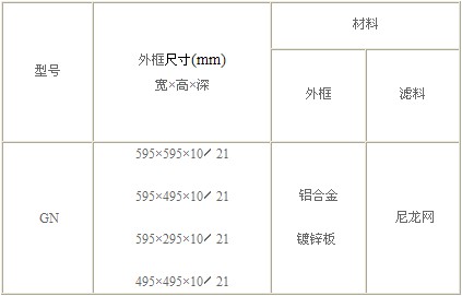 GN尼龍網(wǎng)初效過濾器技術(shù)參數(shù):