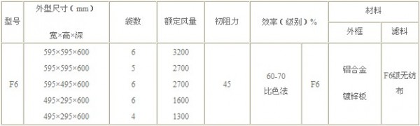 注:F6級(jí)中效袋式過(guò)濾器在中效過(guò)濾器中要比F5級(jí)中效袋式過(guò)濾器高一個(gè)級(jí)別。