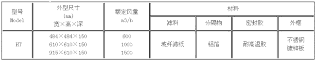 250℃耐高溫高效過濾器型號尺寸及其它參數: