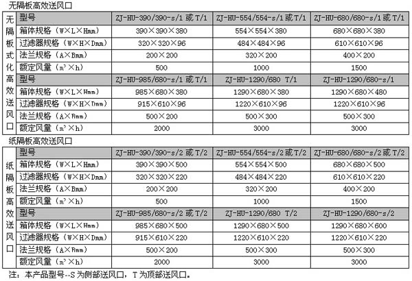 高效送風口分別為頂送風高效送風口和側送風高效送風口,液槽式高效送風口,超薄高效送風口,一體化高效送風口,DOP高效送風口。