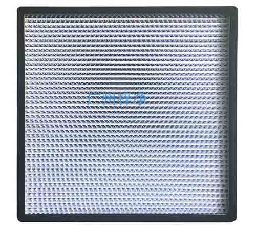 亞高效過濾器采用超細玻璃纖維濾紙或聚丙烯濾紙為濾材,經(jīng)密摺而成。亞高效過濾器密摺的濾紙由紙隔板或鋁箔隔板做成的小插件間隔,保持流暢通道,外框為鍍鋅板、不銹鋼板或鋁合金型材,用新型聚氨酯密封膠密封。
