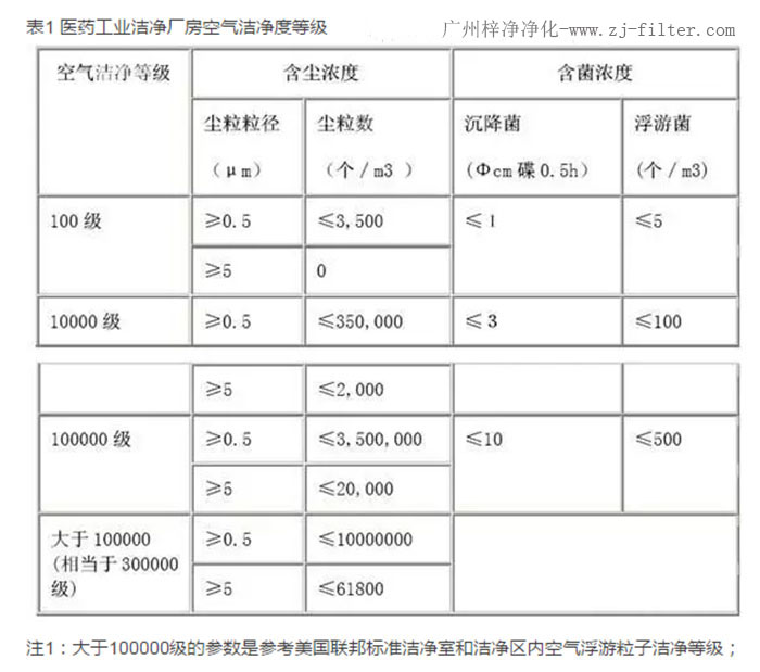 (表1為《醫藥工業潔凈廠房設計規范GB/T14294-1993》中醫藥工業潔凈廠房空氣潔凈度等級)。推薦:初效空氣過濾器??中效空氣過濾器??高效空氣過濾器