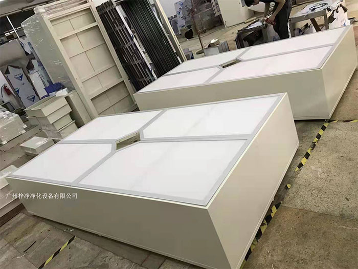 由于層流送風天花用戶要求不同,500的高度可根據用戶需要制作,高效過濾器可選用側鋪或平鋪兩種。