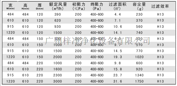 高效過濾器規格尺寸大全【廣州梓凈】